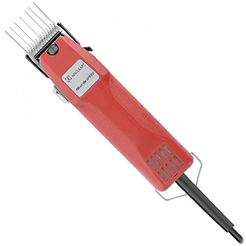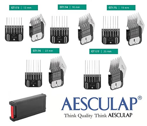 Hundeschermaschine AESCULAP GT114 Speed / Favorita Speed mit 1,8mm Scherkopf GT710 + 5 stabile Metallaufsteckkämme (13mm, 16mm, 19mm, 22mm, 25mm.) Dies ist eine professionelle Schermaschine, die praktisch und universell einsetzbar ist und super viel Leistung hat. Sie ist besonders kraftvoll und zuverlässig, auch bei dickem Fell! Made in Germany! Das Gerät ist besonders ergonomisch, liegt gut und sicher in der Hand, und sorgt für ermüdungsfreies Arbeiten. Die Favorita Speed hat einen strukturierten Griffbereich für sicheren Halt, und schneidet somit auch perfekt in schwierigen Winkeln! Der Schalter im Front-Bereich der Maschine sorgt für komfortablen Einhandbetrieb. Die Favorita Speed ist aus unzerbrechlichem Spezialkunststoff! Die Favorita Speed hat einen HIGH-SPEED ANTRIEB. Der kraftvolle Motor erzielt 3.000 Hübe/min. Diese starke Leistung brauchen Sie insbesondere bei dickem Fell! Durch den verschleißfesten Metallschwinghebel hat man mit Sicherheit gleichbleibend gute Schnittergebisse. Das perfekt abgestimmte Ventilationssystem und der leicht zu reinigende Luftfilter schützen das Gerät vor Überhitzung und gewähren so eine sehr lange Lebensdauer. daher ist das Gerät auch für den Dauerbetrieb und gewerblichen Gebrauch geeignet! Das Gerät ist ein Traum für jeden anspruchsvollen Endanwender und jeden Profi Groomer. Lieferumfang: -1 Favorita Speed Maschine (GT114) -Favorita Fein-Scherkopf GT710 / 1,8mm -1 Aesculap Ölflasche -1 Gebrauchsanweisung -1 stabiler Hartschalenkoffer-Rotschopf24 Tasche (powerd by Aesculap) Technische Daten: -Scherkopfsystem: Aesculap Favorita Scherkopfsystem -Antrieb: Universalmotor, 230 Volt, -Motoreneinheit: 35 Watt, 3000 Hübe/min -Gewicht: ca. 650 g -Lautstärke: ca. 70 dBA -Kabellänge: ca. 5 Meter, mit Aufhängeöse