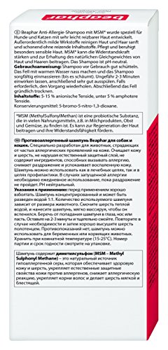 Beaphar Anti-Allergie-Shampoo mit MSM* wurde speziell für Hunde mit sehr leicht reizbarer Haut entwickelt. Außerordentlich milde Wirkstoffe reinigen Haut und Haar sanft und schonend ohne reizende Inhaltsstoffe. Pflegt und beruhigt besonders sensible Haut. MSM* stärkt die Widerstandskraft und trägt zur Erhaltung des natürlichen Gleichgewichtes von Haut und Haaren bei.