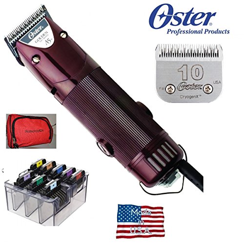 Rotschopf24 Edition: Oster Profi Schermaschine Oster Golden A5, 2- Speed Power mit 1,5mm Schneidsatz, Rotschopf24 Tasche und 8 Metallaufsätze (3-25mm) Dies ist ein echtes Profigerät für den täglichen Gebrauch. Es ist sogar für den gewerblichen Gebrauch bestimmt.Diese Schermaschine eignet sich mit dem beiliegenden 1,5mm Schneidsatz (Size 10) für folgende Fellarten: -Glattes / langes Fell -Drahtiges Fell -Weiches, lockiges Fell -Kräftiges dichtes Fell mit Unterwolle -Verfilztes Fell Die Oster Golden A5 hat einen extra starken, laufruhigen 45-Watt-Motor. Die Maschine eignet sich für Profis, für anspruchsvolle Heimanwender, und auch „Laien“ kommen damit problemlos zurecht. Das Gerät ist ergonomisch, liegt gut / sicher in der Hand. Der Griffbereich hat ein griffiges Profil für sicheren Halt; somit schneidet das Gerät auch perfekt in schwierigen Winkeln. Die Oster Golden A5 hat ein schlagfestes Gehäuse, was auch extreme Belastung standhält. Der kraftvolle Motor läuft ruhig und ist auch für ängstlichere Tiere geeignet. Das Antriebssystem bietet dem Anwender ein unvergleichlich sanftes Arbeiten + effizientes Schurergebnis. Die Maschine hat 2 Geschwindigkeitsstufen (2200 bzw. 3300 Doppelschübe), so dass man je nach Fellart die Leistung steuern kann. Auf die Oster Golden A5 passen viele „Snap On“ Schneidsätze (von 1/20mm bis 13mm), welche Sie in unserem Shop bekommen. Details: -Gewicht: ca. 520 gr -Kabellänge: 3,5 m -Betriebsspannung: 220-230V, 50-60Hz -Leistung: 45 Watt -Made in USA -Werkzeuglos wechselbarer Luftfilter -Einfach auswechselbares Scherkopfsystem (Snap On) Lieferumfang: -Schermaschine Oster Golden A5, 2 Speed -1,5mm Schneidsatz, Size 10 -Scherkopf-Öl -Schermaschinen-Fett -Reinigungsbürste -Extra Kohlebürstenset -8 Metallaufsteckkämme (3, 6, 10, 13, 16, 19, 22, 25mm) -Anleitung-Rotschopf24 Tasche